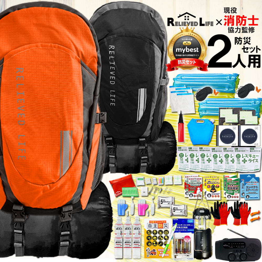 【防災士&消防士監修】楽天1位! 防災リュックもシュラフもエアーベッドも2個! 防災セット 防災グッズ 2人用 非常用トイレ20回 防寒 寝袋 エアーマット 二人用 防災ラジオ ランタン 充電器 非常用持ち出し袋 軽量 家族用 子供用 女性 避難グッズ 防災用品 保存食 保存水