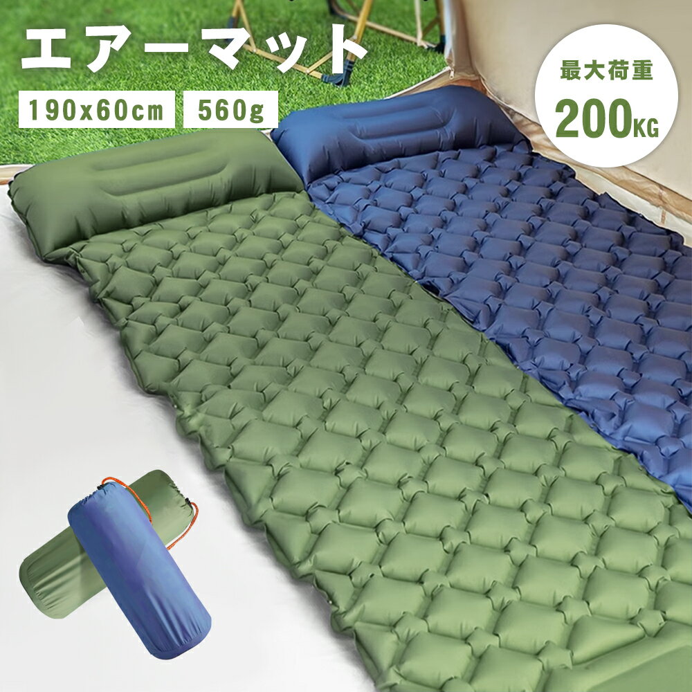 クーポンで最安2600円/枚※エアーマット キャンプ マット エアーベッド キャンプマット アウトドアマット テント 車中泊マット 足踏み式 枕付き 折畳み式 幅広厚手 軽量 キャンプ コンパクト 防水 防潮 防災グッズ 40Dナイロン+TPU生地 収納袋付き 簡単収納